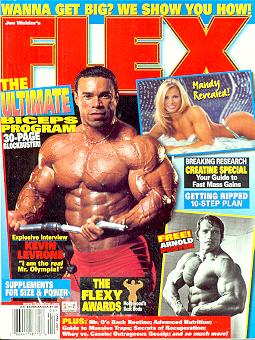 Flex Magazine considers themselves the bible of hardcore bodybuilding. Each month, Flex visits and speaks with the champions of bodybuilding at their gyms, at contests, and at their homes, gathering information and photographs, Flex brings you their latest strategies, and the competitive goals that they apply to further develop their title-winning physiques. Flex is the official magazine of the IFBB Bodybuilding Federation. On the cover is Kevin Levrone. In the inset is Mandy Blank, and Arnold Schwarzenneger. | ![]() |