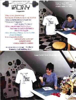 IRONY Magazine, since October 2000 has provided some of the most unique and top stories and photos of women who lift. Covering many of the major and state wide womens bodybuilding, strength, and fitness events. IRONY has also provided international news and coverage of the sport, as well as the people who make international lifting so popular. |