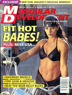 Muscular Development, owned by Twinlab, is another serious bodybuilder magazine that concentrates on natural bodybuilding, but also covers fitness and health related items. They pride themselves on giving its readers extensive coverage on the cutting edge of training, diet and nutrition articles. It also has great pictures of bodybuilders, and makes for enjoyable reading. The look of natural bodybuilding and less on the hardcore look is what Muscular Development stands for. With everything geared towards the natural look, it continues to attack steroids, drugs, etc. On the cover is Diedre Pagnanelli. |