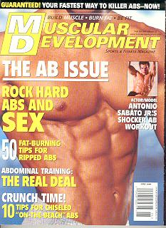 Muscular Development, owned by Twinlab, is another serious bodybuilder magazine that concentrates on natural bodybuilding, but also covers fitness and health related items. They pride themselves on giving its readers extensive coverage on the cutting edge of training, diet and nutrition articles. It also has great pictures of bodybuilders, and makes for enjoyable reading. The look of natural bodybuilding and less on the hardcore look is what Muscular Development stands for. With everything geared towards the natural look, it continues to attack steroids, drugs, etc. On the cover is Antonio Sabato Jr. |