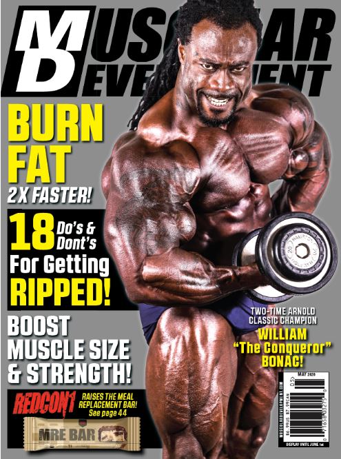 ![]() As in every sport where there is a champion, there are always going to be those hungry young challengers eager to take that throne away from the King of the Hill – or in the case of bodybuilding, the King of Mount Olympus. Bodybuilding’s reigning king is 2019 Mr. Olympia Brandon Curry, and one man who could challenge Brandon for the crown this year is two-time Arnold Classic champion William Bonac, who is on the cover of this month’s MD. On the cover is William Bonac