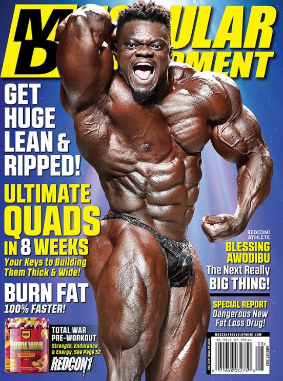 ![]() Blessing Awodibu is one of the most exciting personalities in bodybuilding today, but The Boogieman has demonstrated that he is much more than hilarious skits on his Instagram page and YouTube channel. This year Blessing scored back-to-back wins at the Indy Pro and the New York Pro, and now he’s working with legendary coach George Farah with the support of supplement giant Redcon1 as he preps for this year’s Mr. Olympia. Blessing Awodibu is the next really big thing in bodybuilding, and we are honored to feature him on the cover of this month’s Muscular Development. On the cover is Blessing Awodibu |