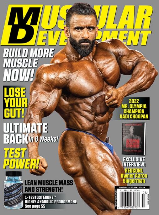 ![]() When Hadi Choopan won the Sandow at the 2022 Olympia Weekend, it was a cause for celebration for millions of bodybuilding fans around the world as well as the reigning Mr. Olympia. Hadi’s victory was the culmination of years of struggle to overcome obstacles and his win proved that patience, hard work, persistence and dedication pay off. Mr. Olympia Hadi Choopan is a champion in every sense of the word, and we are honored to showcase his fortitude and rise to the pinnacle of bodybuilding by featuring him on the cover of this month’s Muscular Development On the cover is Hadi Choopan |