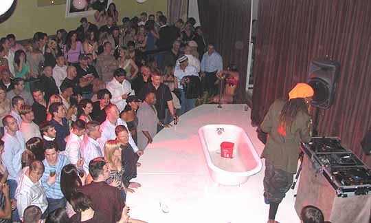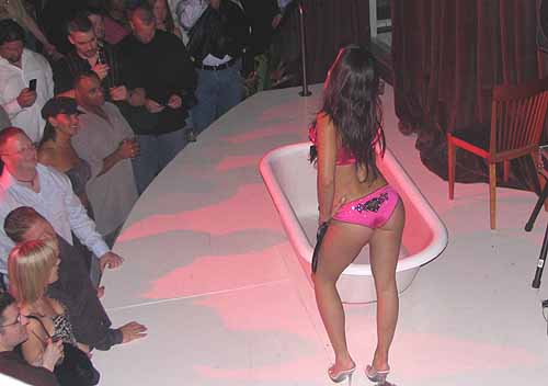 We arrived a little later than expected on Friday night to the Sugar Bar, a brand new club in Columbus, because we were at the Friday Night Fights watching people beat each other up. Never the less, we took a taxi cab, which was interesting, because the taxi driver did not know where this club was. We found out that it was only open two days, and right next door to it's sister club, the Spice Club. The place was packed, absolutely full, but because of our host Jason Dhir, we gained special access to the second floor, the VIP area. From there, we took only a few pics, but I was quite interested when one of the Pussycat Dolls came out, and did a little dance in a bathtub on the stage. Very interesting.