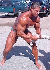 Roland Kickinger is definately the tallest bodybuilder at the Pro Ironman, close to 6'5". Here he is training outside to make sure all of the poses will be right on stage.