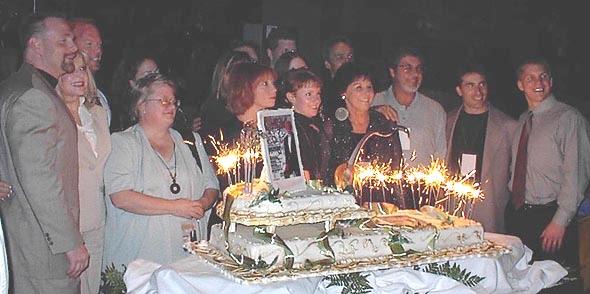 Muscle & Fitness Magazine celebrated its 60th anniversary with a big bash at the Mandalay Bay Resort. Joe Weider was not there (he was ill with the flu), but mostly everybody else was, including Eric, Betty and Ben Weider, and many, many people who helped as the magazine prospered. Some of the people pictured in the photo are Tom Deters, Vince Scalisi, Mary Ann Muica, and Jo Ann Crumb.