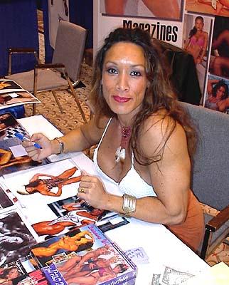 Denise Masino was at the Muscle Elegance booth, promoting her 11th issue of the partially and all nude female bodybuilding magazine which has found a niche with her fans. Denise also promotes her 'special' videos. |